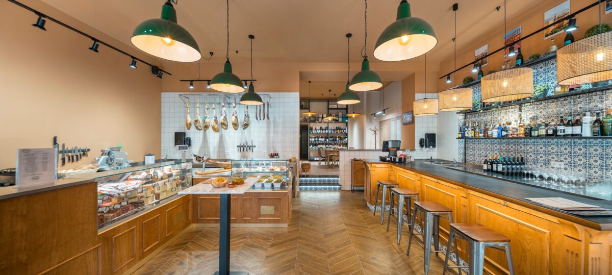 Plafonról lecsüngő sonkák és kolbászok, pultban sorakozó sajtkülönlegességek és olívabogyók megannyi fajtája: mindez nemhogy megszokott a Bartók Béla úti étteremben, hanem az autentikusság legjobb fokmérője. Pár éve, hogy Budapesten is lábat vetett az ultramarinos spanyol koncepció, melyben delikát- és bárfunkció egyszerre foglal helyet. Így hát, ha a menüsorról egy étel elcsábít, akkor azt megtalálhatjuk a delikátesz polcain is, és haza is vihetjük azt. Ám előtte érdemes elidőzni a Martinezben, hisz a spanyol életérzést nemcsak a fenséges fogások adják: a mediterrán enteriőr, melybe még a csempék is spanyol földről érkeztek, egy pillanat alatt elbűvöl minket.
