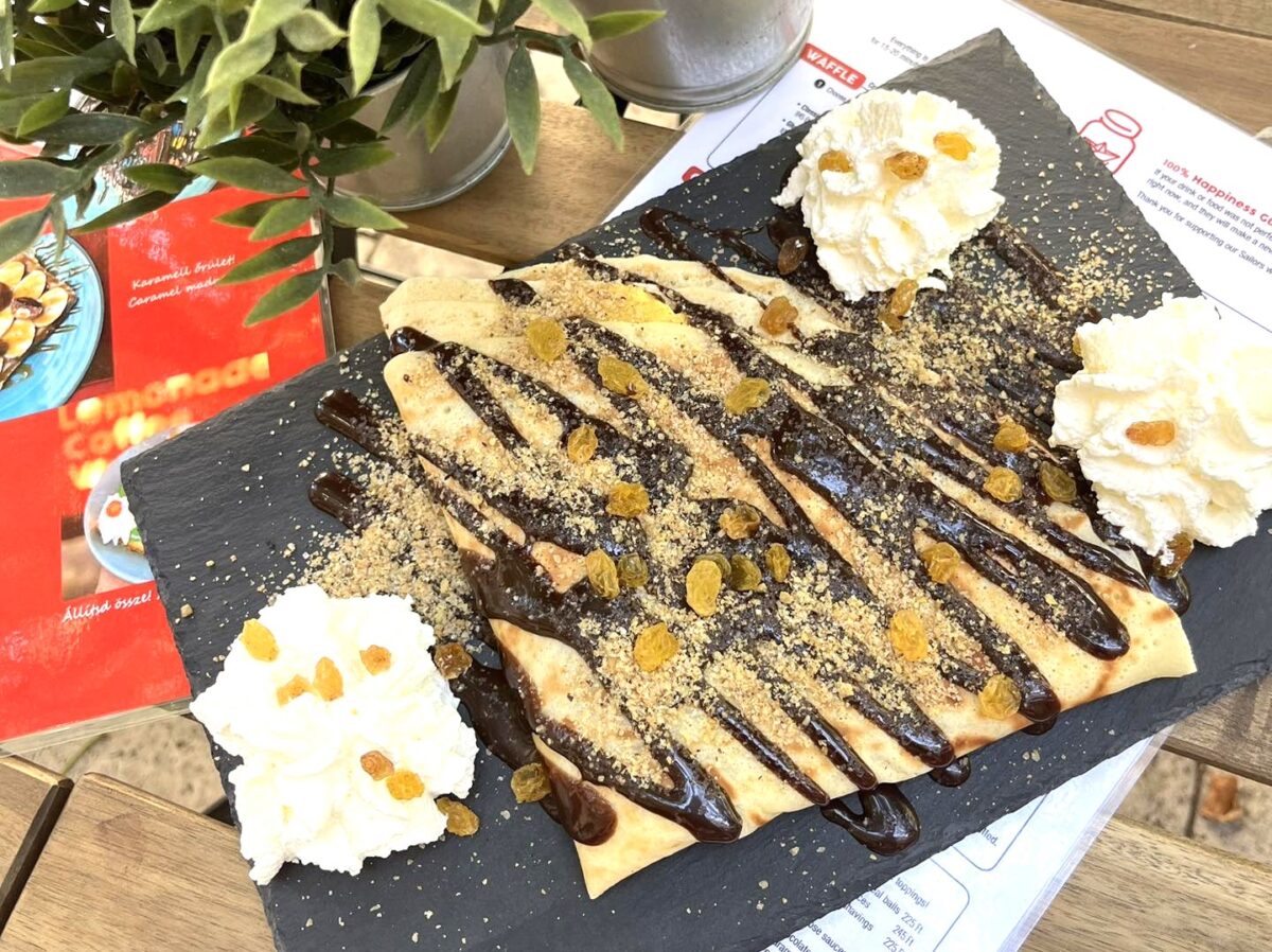 Nem értjük, miért szerénykedik az Ahoy! legénysége, hiszen a gofri, a forró csoki és a limonádé mellé nyugodtan beletehetnék a nevükbe a pancake szót is, hiszen mennyei, igazán kreatív óriáspalacsinták is elérhetőek náluk. A kínálatban az aduász fehércsokis-málnás-pisztáciás, az őszi kedvenc fahéjas-almás-karamellás és az örök klasszikus somlói ízvilágú finomságokat egyaránt megtaláljátok – utóbbit a mazsola esküdt ellenségei is nyugodtan kikérhetik, hiszen a desszert ezen változatából könnyedén kihagyható a sokakat megosztó aszalvány.