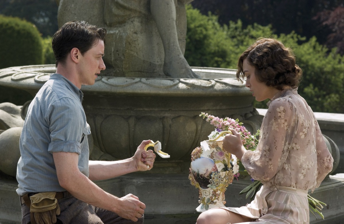 James McAvoy (Robbie Turner) and Keira Knightley (Cecilia) on the set of Atonement.