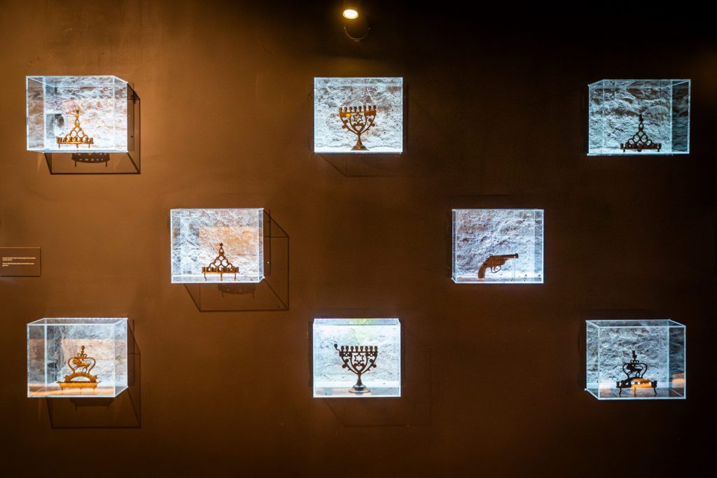 The exhibition wouldn’t be complete without the ornate objects and menorahs from the factory of Tivadar Mika himself – the underground museum also holds rare treasures like sugar and meat tickets from 1945, newspapers and posters, and colorized photos of the bustling downtown streets.